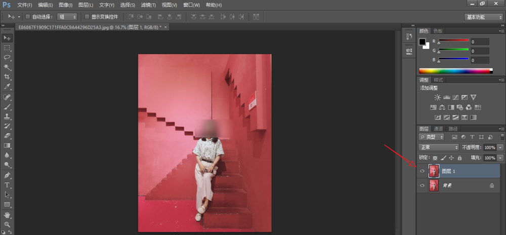 打开Photoshop软件,导入一张图片素材,点按快捷键【Ctrl+J】,复制图层,