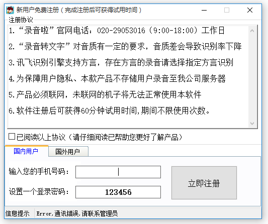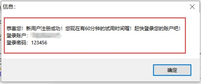 成功注册账户,你的手机号码将作为登录账户使用,你将拥有60分钟的试用时间,