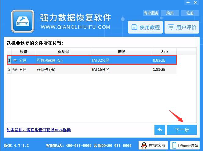3、接下来,在强力数据恢复大师中,选择用户需要恢复通讯录的数据所在分区,并点击界面右下角的“下一步”按钮。