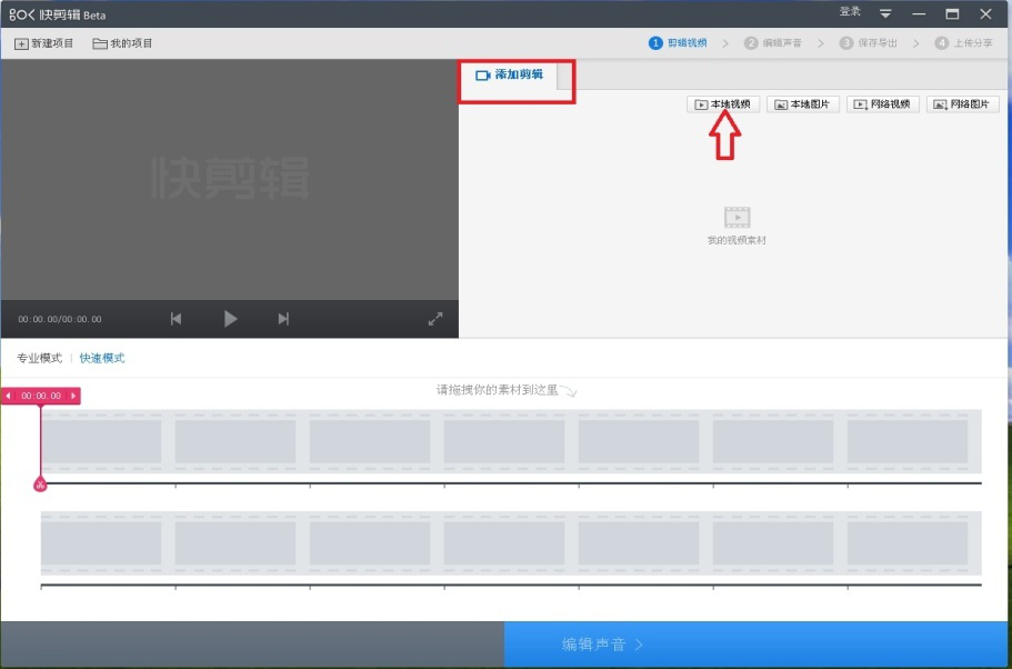 2、在“添加剪辑”中点击【本地视频】,添加准备去水印的视频。