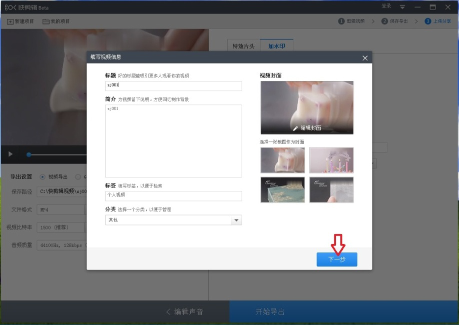 9、接着会弹出“填写视频信息”对话框,可以无视,直接点击右下方【下一步】。