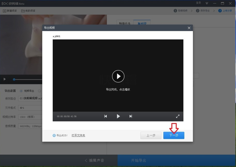 10、等待导出完成,点击【下一步】。然后可以我来教你视频。