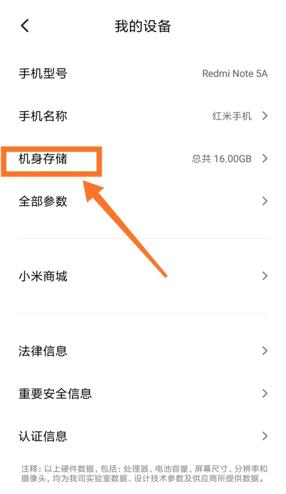 3)在我的设备中找到并点击【机身存储】。