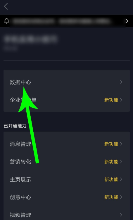 进入数据中心,如图,在箭头所指位置即可查看7日内和30日内视频总播放量以及主页访问总人数,查看完毕,向下滑动,