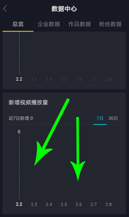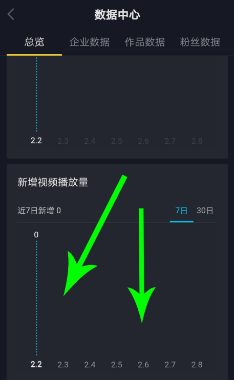 点击【新增视频播放量】版块,可查看30日内每日视频播放量,查看完毕,向下滑动界面,