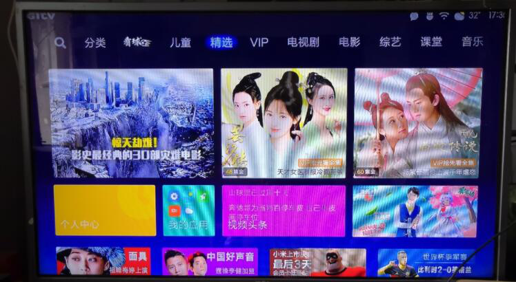 2、然后,将智能电视机或者搭配了机顶盒的电视打开,进入电视播放的主界面。