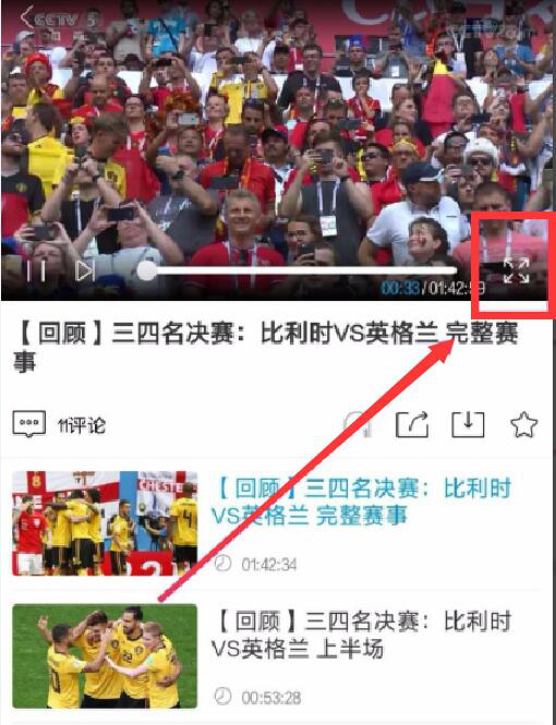 3、接下来,回到手机的央视影音,打开该APP,然后点击自己想要投屏到电脑上的视频,并点击播放窗口的全屏模式。