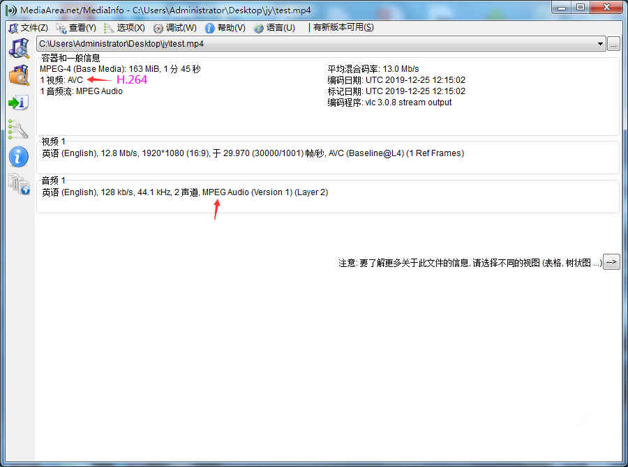 视频转换完成,关闭VLC播放器。去到目标路径,即可找到处理之后的视频文件,你可以通过MediaInfo工具查看转换后的视频相关参数。