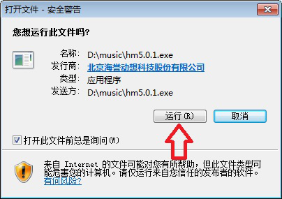 2、点击【打开】-【运行】,安装海马苹果手机助手软件。
