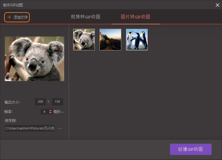 最后点击【创建GIF动图】按钮,软件即可将图片转换成GIF。