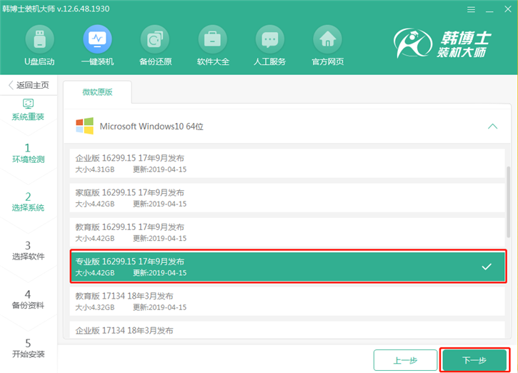通过环境检测之后,你可以选择需要重装的系统,小编选择的是Windows10 64位专业版,选好之后,继续下一步,