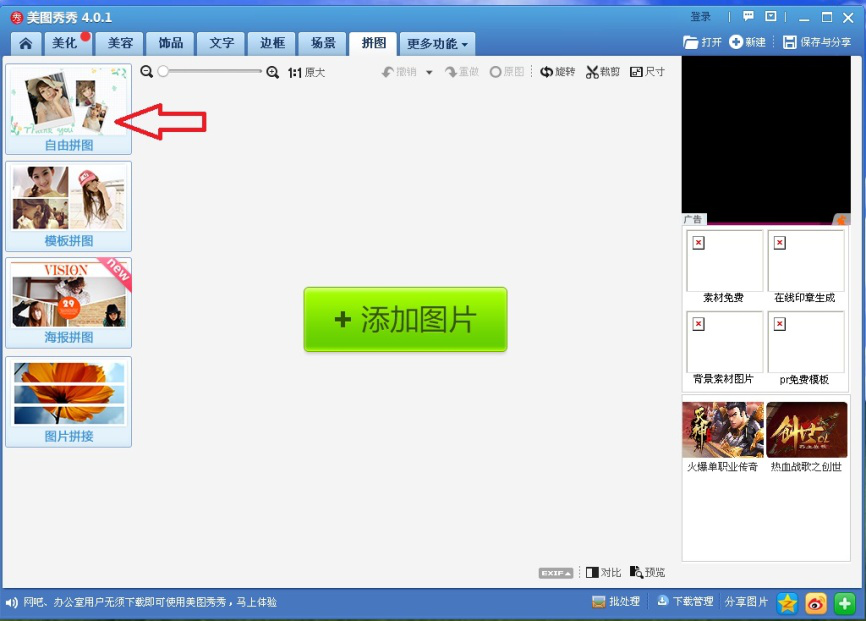 2、然后点击选择【自由拼图】。