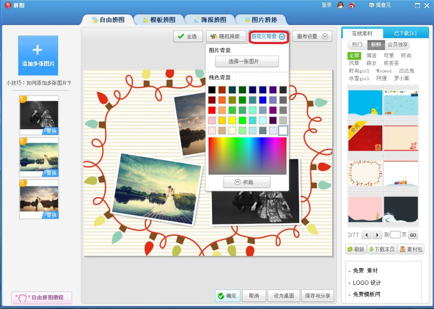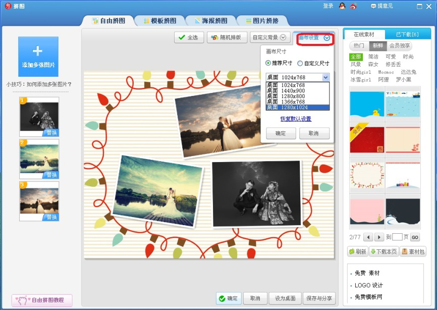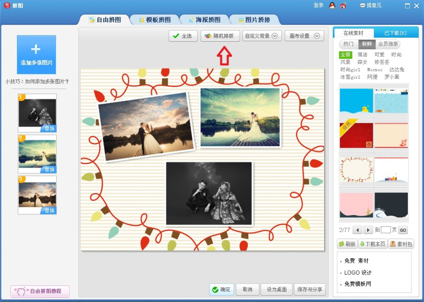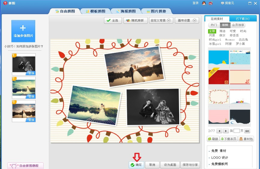 以上就是今天说说美图秀秀软件如何拼婚纱照介绍。当然除了自由拼图模式外,还可以选择模板拼图、海报拼图、图片拼接等模式,应用方法很相似,大家可以试一试。