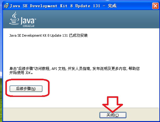 7、最后会出现如图界面。点击【关闭】即可。注意:如果想了解更多JDK教程,可以点击【后续步骤】。