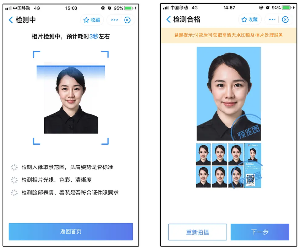 照片上传且成功通过质量检测,即会自动生成效果预览图,