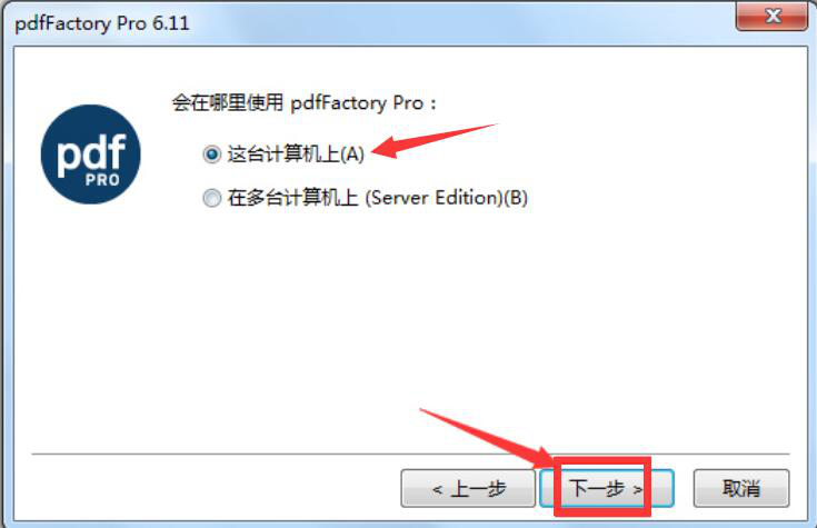 3、在弹出来安装的路径上,用户点选“这台计算机上(A)”并点击右下角的“下一步”按钮。