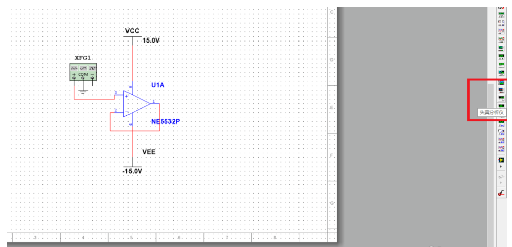 接着添加一个失真分析仪,就在右边栏的其中一个小图标,