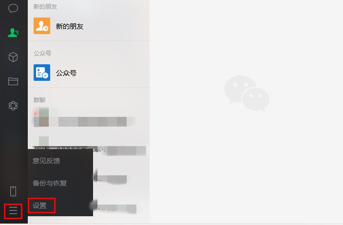 同样作为腾讯推出的社交软件,微信也有截图功能,前提是要自行设置。在电脑中登录微信,进入界面,点击左下角的主菜单,然后选择【设置】,