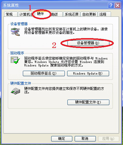 5、将所有USB相关驱动依次卸载完毕后,点击图中任意一个选项,然后点击选择图中标注为“2”的按键(即扫描检测硬件改动按键)。这样系统就会自动扫描并重新安装被卸载的驱动。