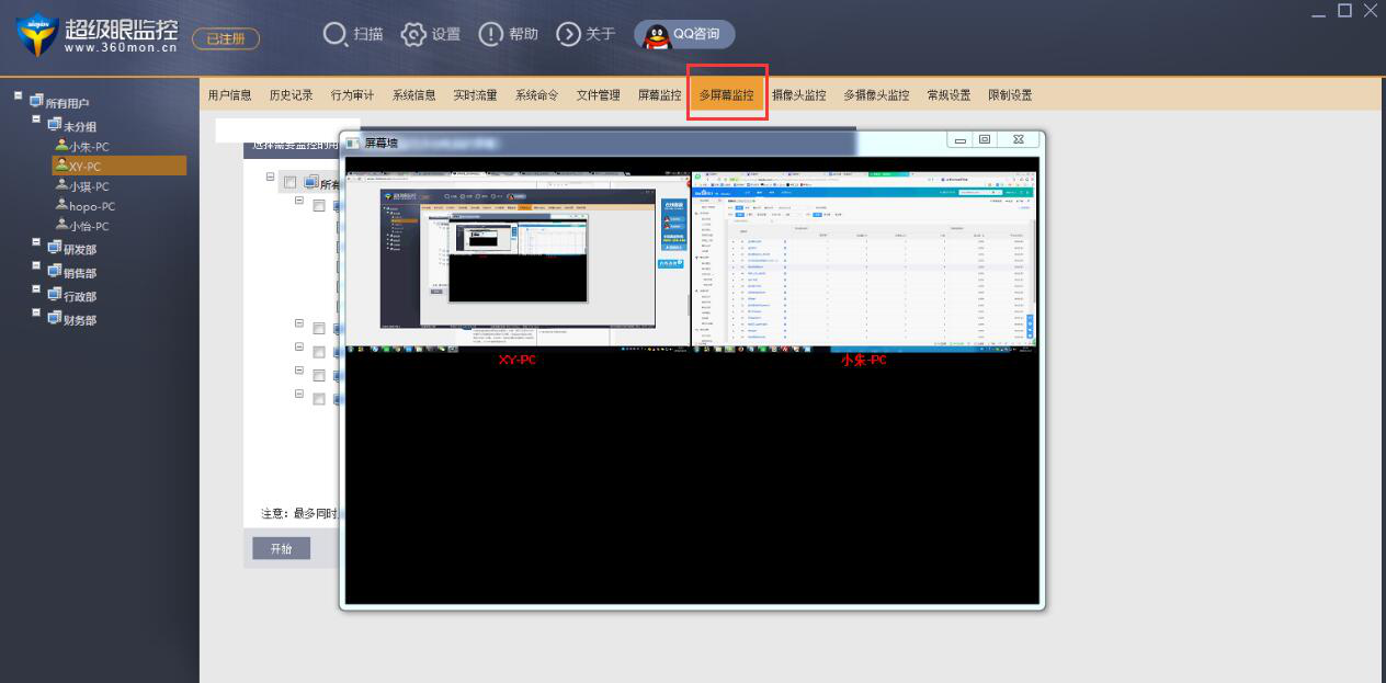 多屏幕监控功能。很多企业管理员都会用到这个多屏幕监控功能。因为它能同时查看多位员工电脑桌面,或者可以帮助抽检某些员工的实时工作情况。