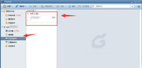 2、然后,在Foxmail客户端的左侧栏处,点击“已发送邮件”,右侧窗口便会出现自己所发送的邮件列表。此时,用户找到需要Foxmail撤回的邮件。