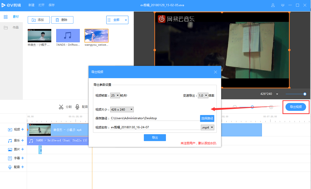 如何使用EV剪辑处理视频素材?
