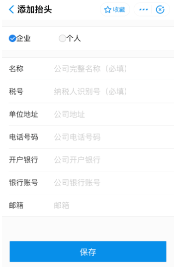 准确输入开发票所需的抬头信息,点击【保存】,