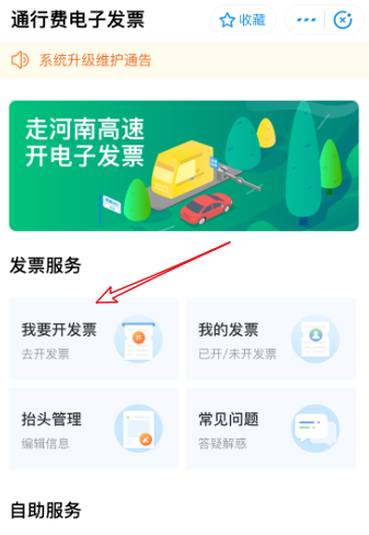 打开这一功能,进入界面,你可以看到【我要开发票】、【我的发票】、【抬头管理】等选项,