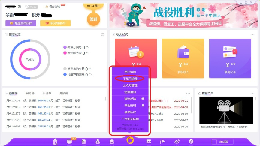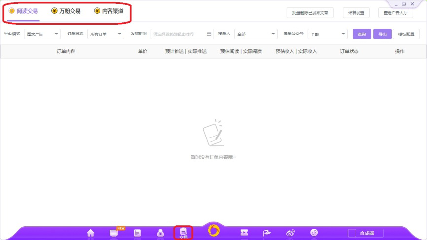 5、点击如图图标,打开交易界面,这里是用户主要的变现营销管理平台。