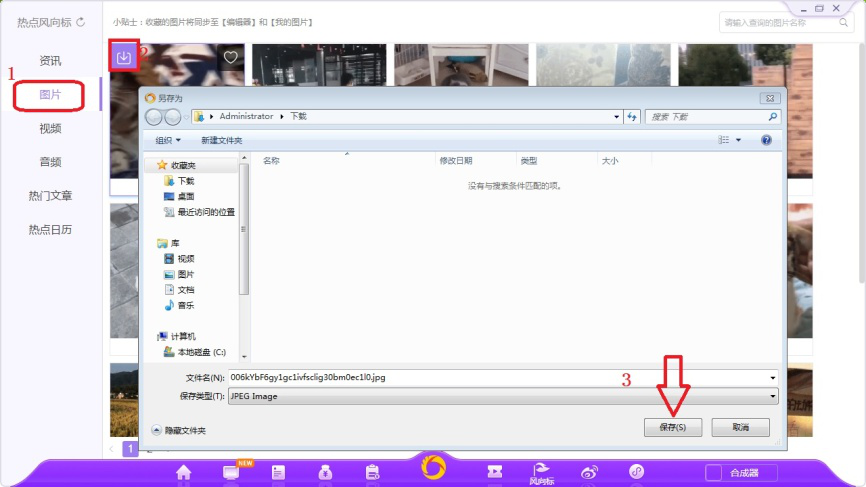 8、选择左侧【图片】选项,这里会更新时下热门的图片素材供用户下载收藏。