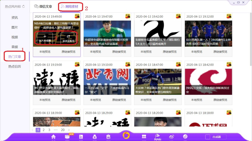 10、依次选择左侧【热门文章】,这里会实时更新时下热门的微信文章和网络素材供用户选择使用。