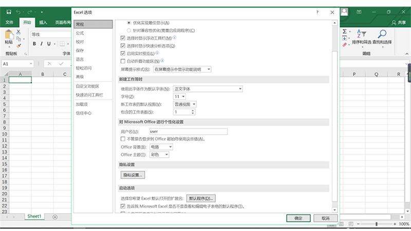 打开MicrosoftOffice任意软件,小编这里打开的是Excel软件,新建一个工作簿,如图,点击【文件】——【选项】,
