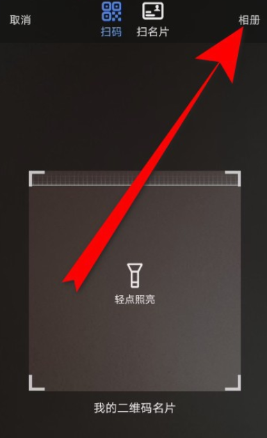 进入扫码界面,如图,点击相册,