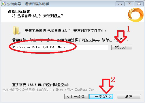 6、进入迅蟒自媒体助手的安装向导界面,点击【下一步】。