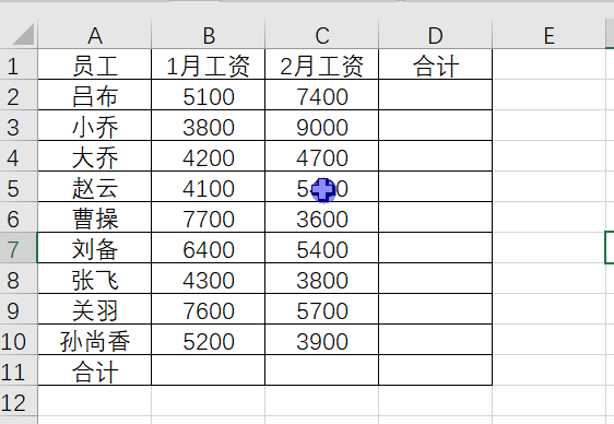 打开Excel工作簿,如图,现在需要对行和列进行求和汇总,你不用手动输入SUM函数公式,只要全选表格区域,按快捷键【ALT+=】,即可得出求和结果。