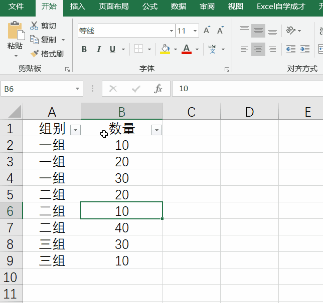 先对数据进行筛选,然后进行求和,直接使用SUM函数是不行的,你可以使用SUBSTOTAL函数来求和,在单元格中输入公式【=SUBTOTAL(9,B:B)】,如图。