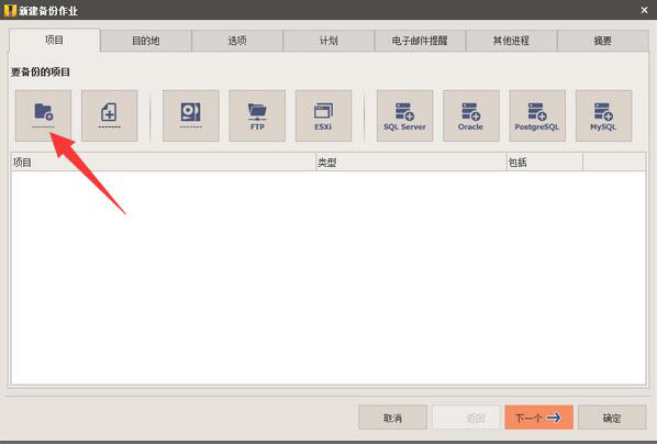 5、接下来,回到IperiusBackup新建备份作业的“项目”操作界面,在此界面中,再次点选需要IperiusBackup备份的文件,再点击其右下方的“下一个”按钮。
