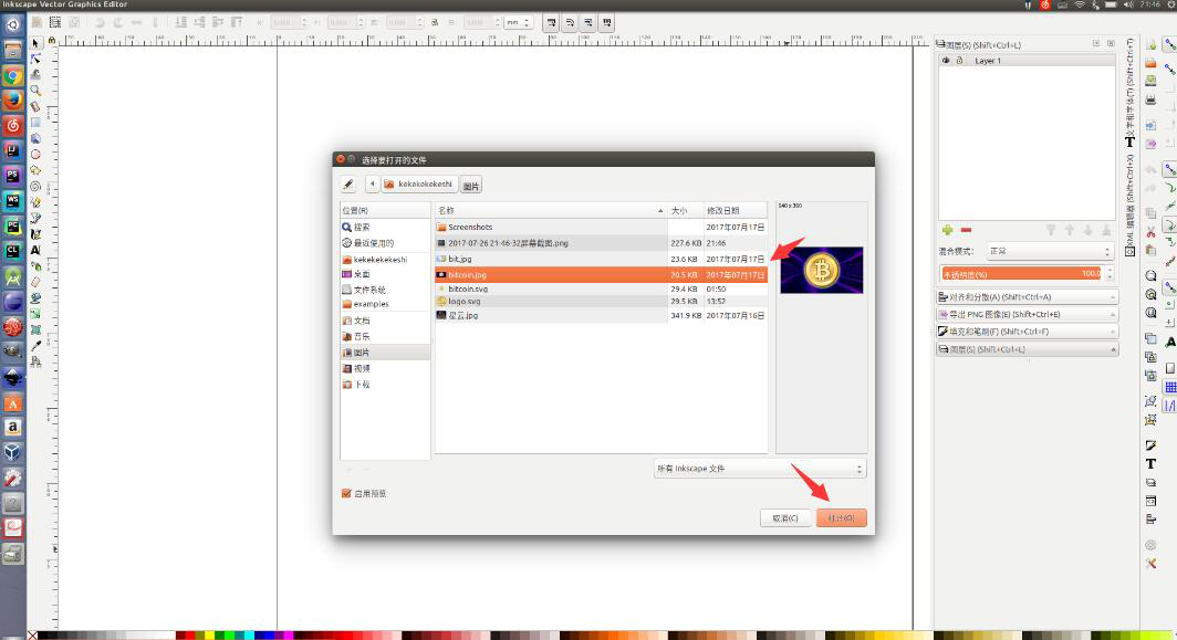 2、文件打开后,选中需要Inkscape抠图的图片,再点击“打开”的按钮。