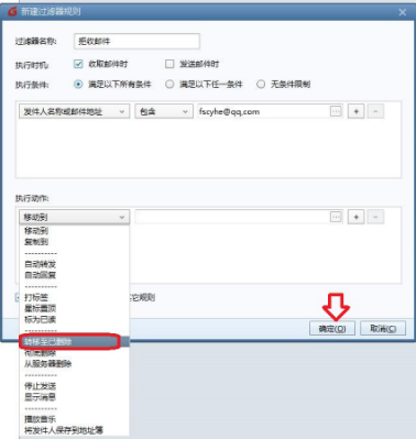 9、在执行动作下方点击【转移至以删除】,然后点击【确定】。
