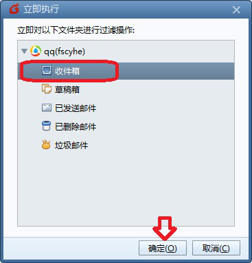 11、在弹出的“立即执行”窗口选择“收件箱”,点击确定即可。