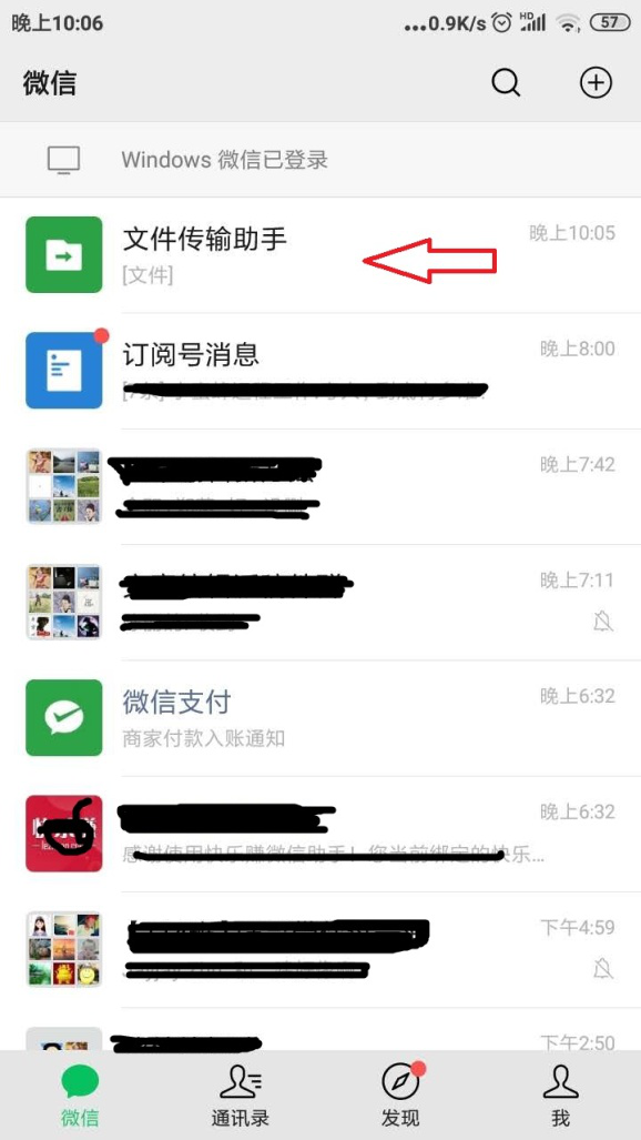 8、打开手机微信,找到并点击【文件传输助手】(一般会出现在最上端),用户就可以发现刚才电脑微信端发送的文件,点击打开即可在手机上查看。