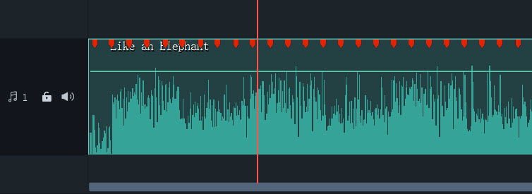 现在将音频导入音乐轨道,你可以看到音频上标记了许多节奏点,在预览框播放试听,如果发现不准确的标记,可以移动调整,