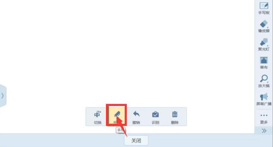 1、首先,老师登录AiClass,在授课界面中,点击右侧工具栏中的“手写板”,从而进入AiClass手写板的使用。