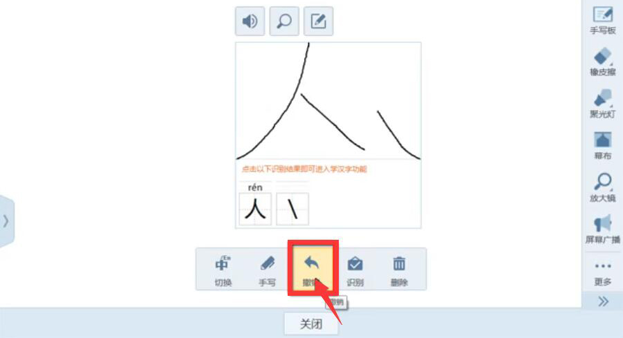 4、接下来,在AiClass手写板中点击“撤销”的按钮,即可将手写有误的笔画给撤销。