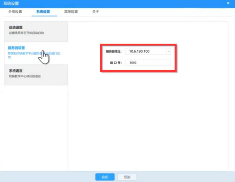 2、接下来,切换到AiClass系统设置的服务器设置,老师可以设置服务器的地址和端口号。