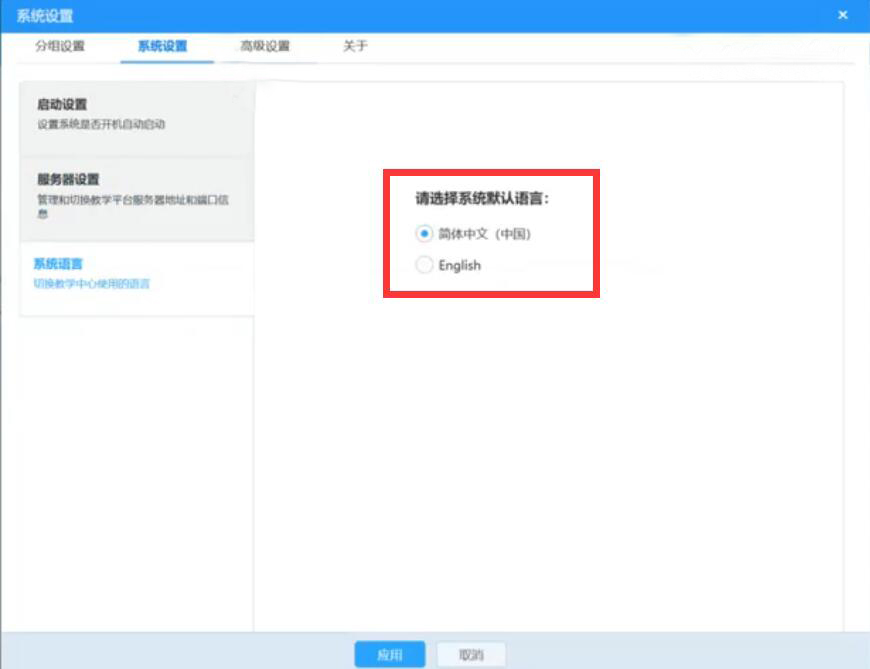 3、老师在AiClass系统设置中,还可以设置系统默认的语言来迎合自己的使用习惯。