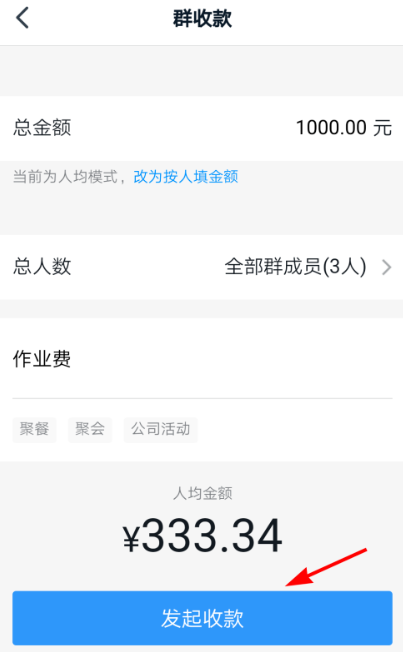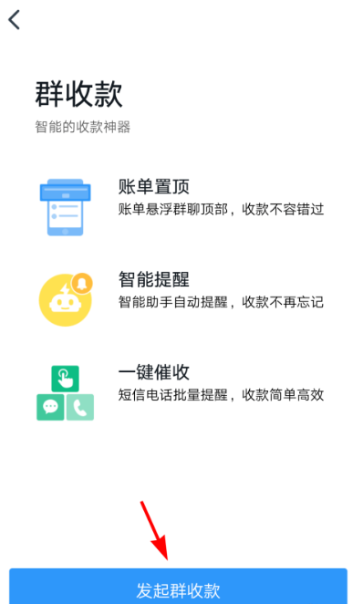 打开群收款功能,如图,点击【发起群收款】,