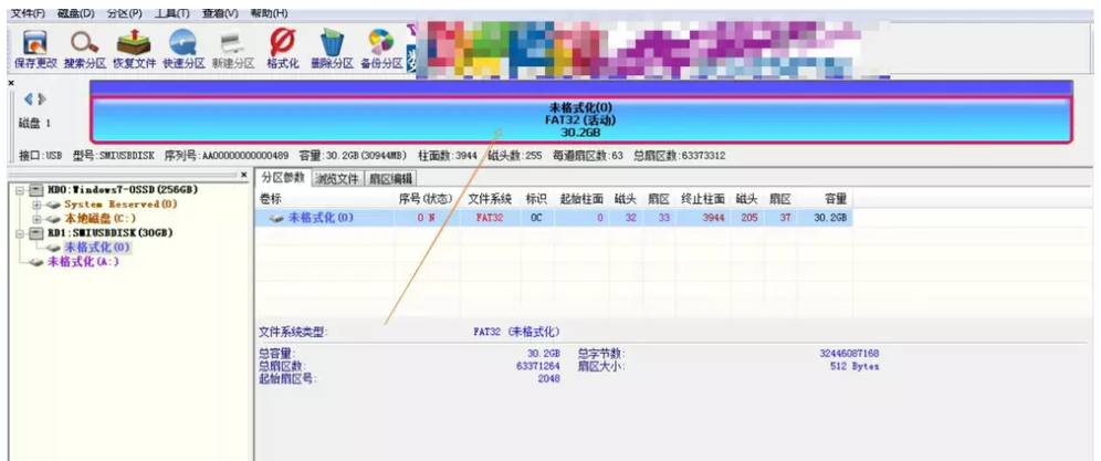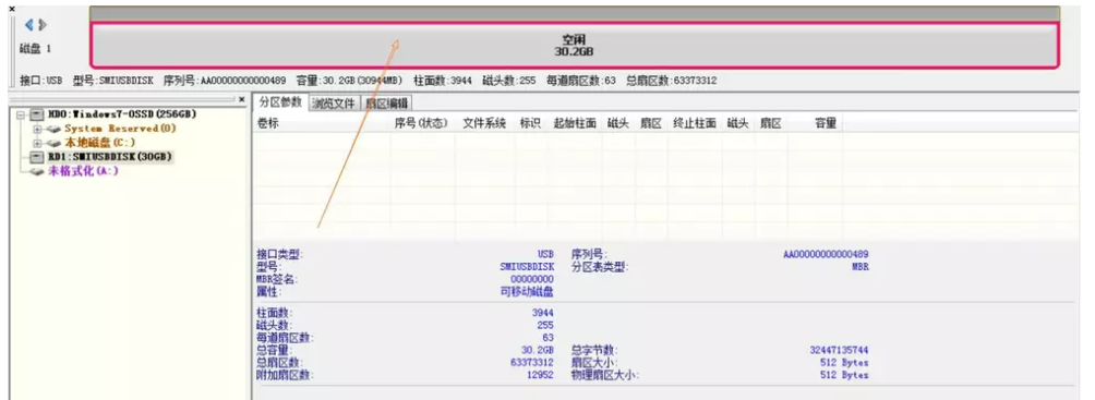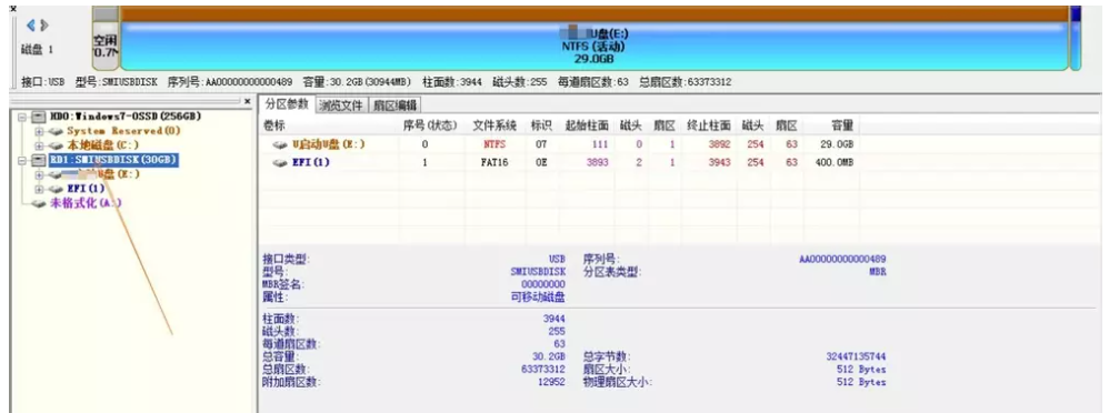 现在点击打开DiskGenius软件,如图,这里会显示你的U盘,