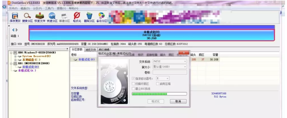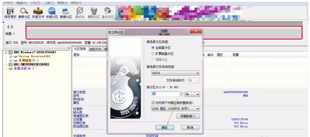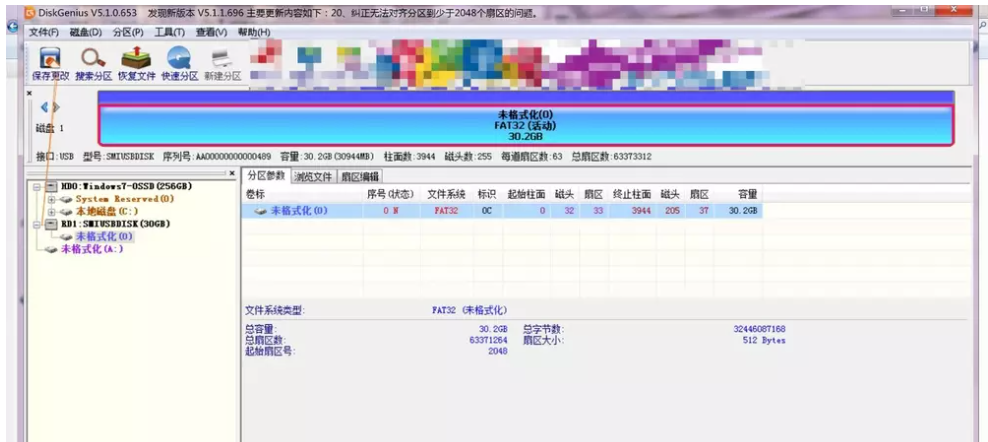 弹出对话框,如图,选择文件系统类型为FAT32,点击确定,回到软件界面,点击左上角的【保存更改】,