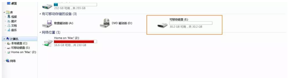 现在点击桌面任务栏中的文件夹图标,进入以下界面,你会发现U盘变成了一个分区,不再是两个盘符。